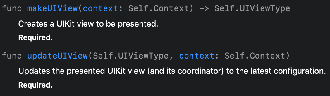 - UIViewControllerRepresentable