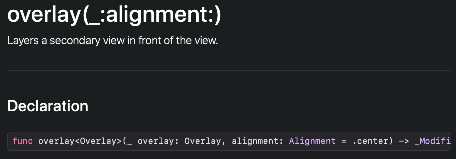 overlay 함수역시 인자가 두개지만 alignment가 .center가 기본값이니