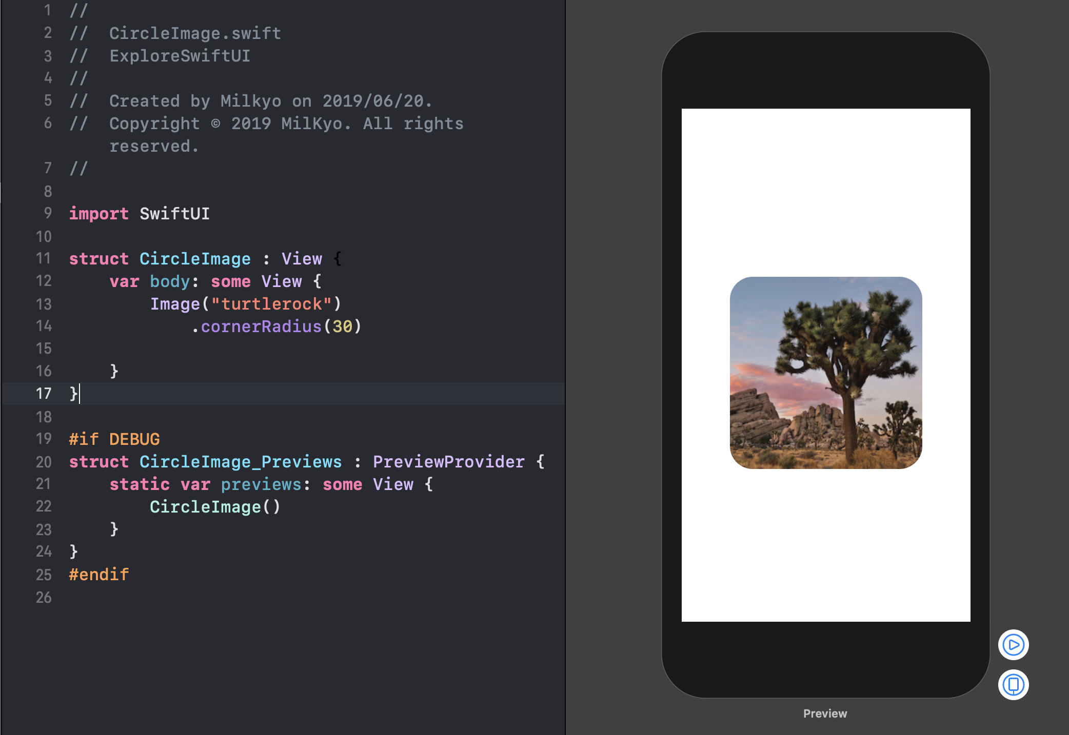 CircleImage 스위프트 UI 파일을 생성해주는 걸로 시작하네요,