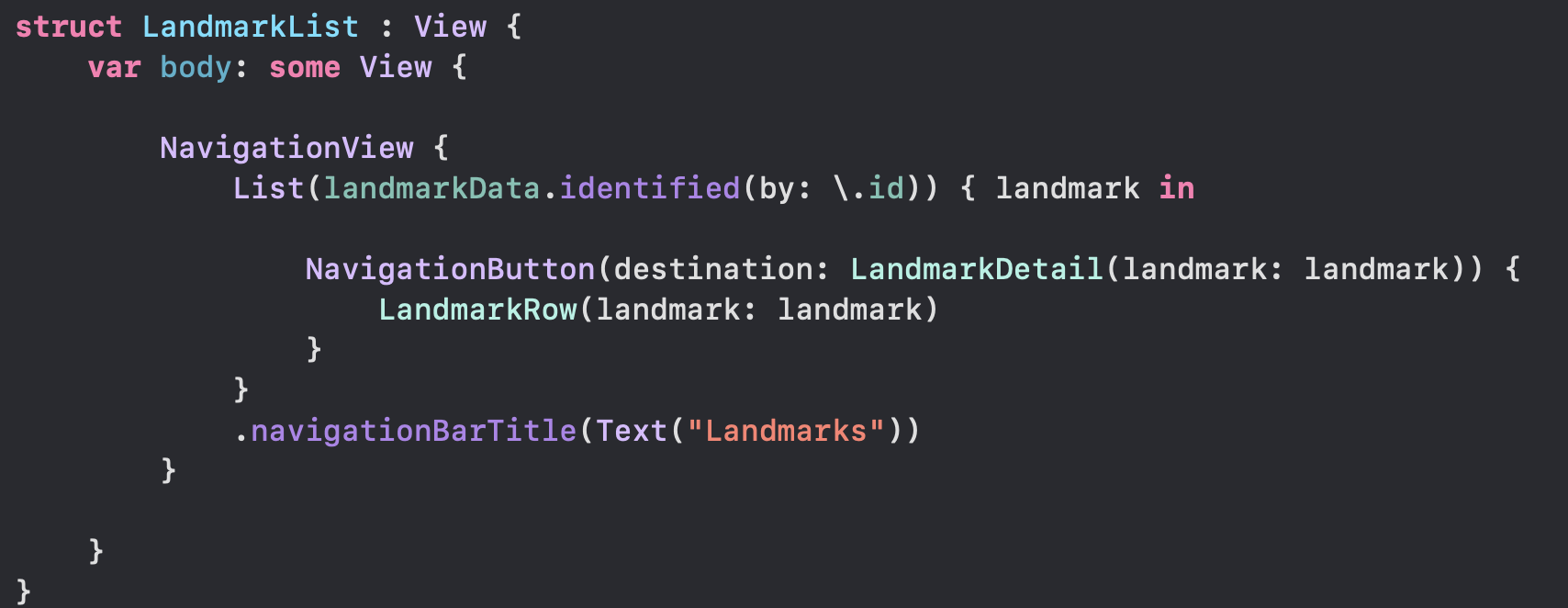 LandmarkList()로 바꿔주면 챕터2는 끝 입니다.
