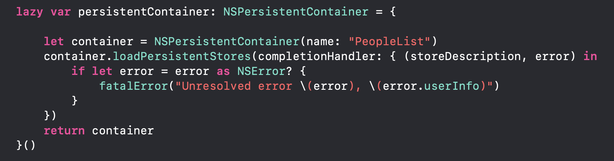이제 마지막으로 세 개를 한번에 셋업해주는 NSPersistentContainer를 만들어봅시다.