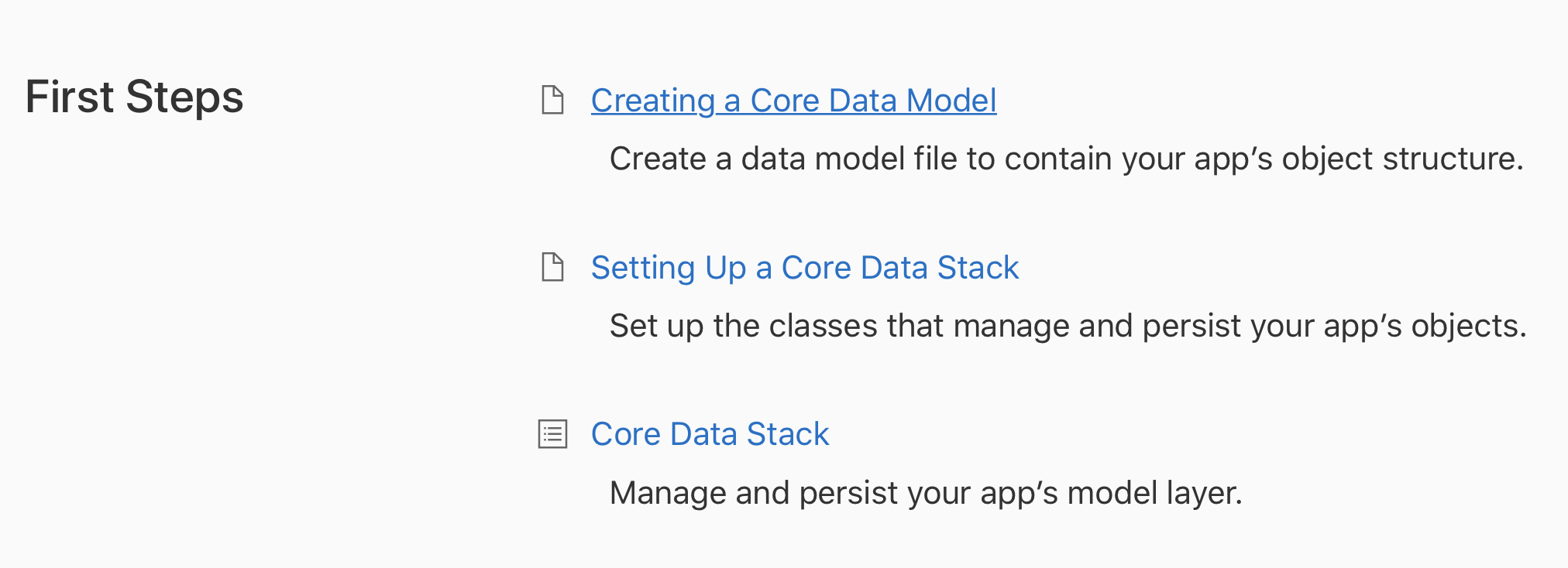 일단 애플 공식문서를 보도록 하겠습니다.( https://developer.apple.com/documentation/coredata )