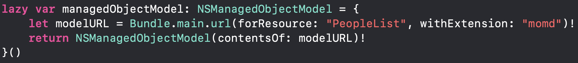 forResource에는 xcdatamodeld 확장자를 가진 파일명을 적어주면 됩니다.