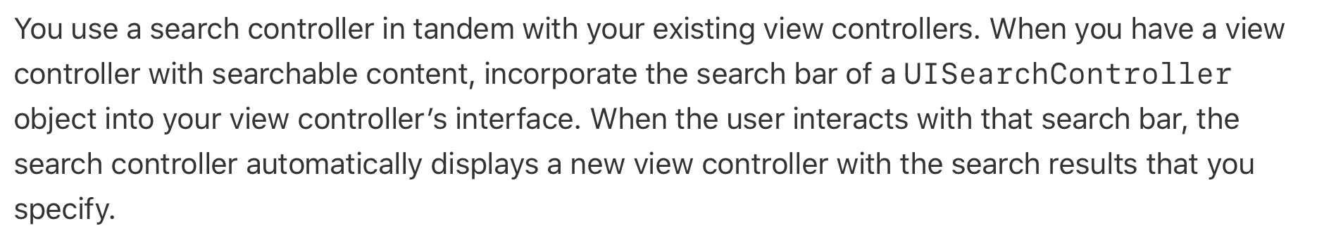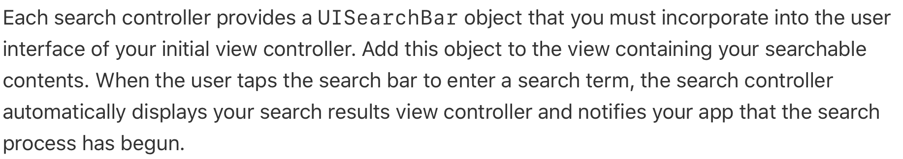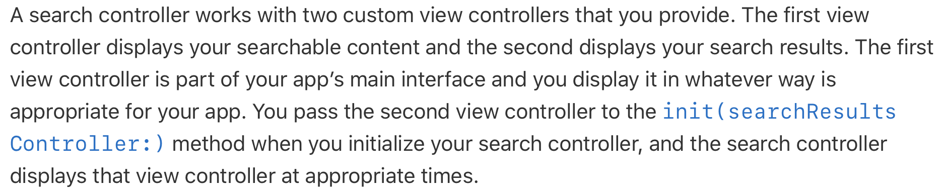 여기서는 UISearhch Controller 가 UISearchBar를 제공한다. 정도 건지면 되겠네요.