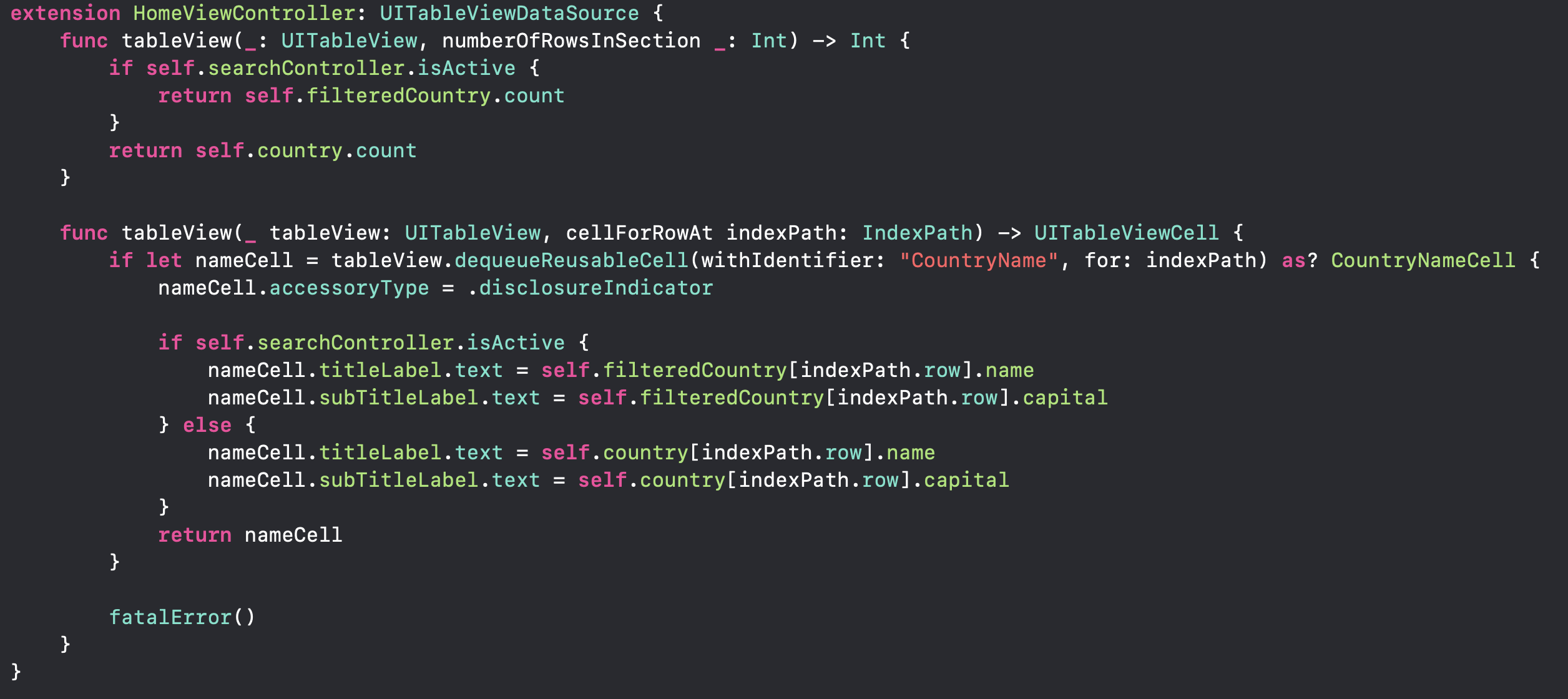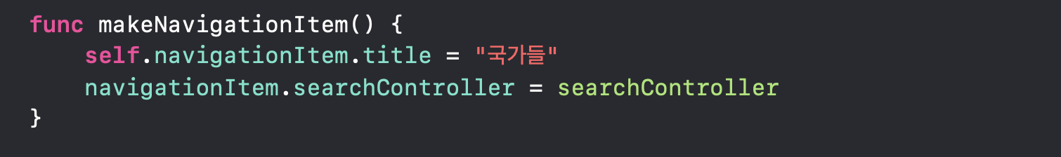 navigationItem.searchController에 아까 만들어준 UISearchController를 넣어줍시다.