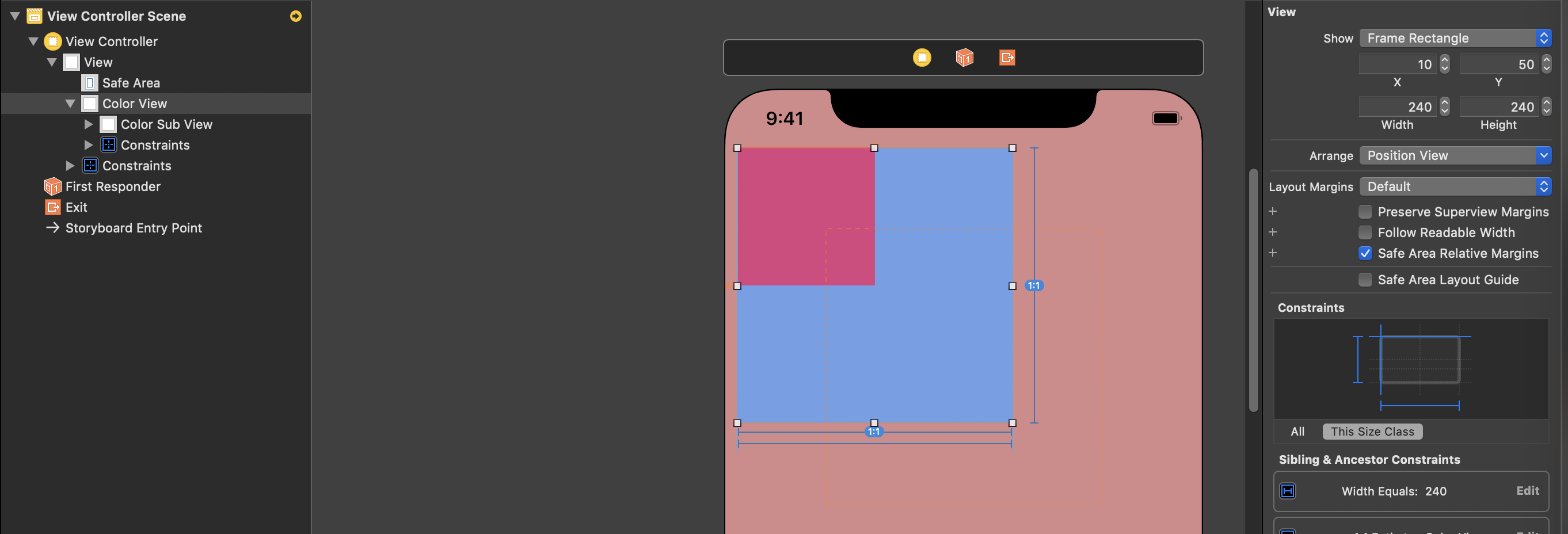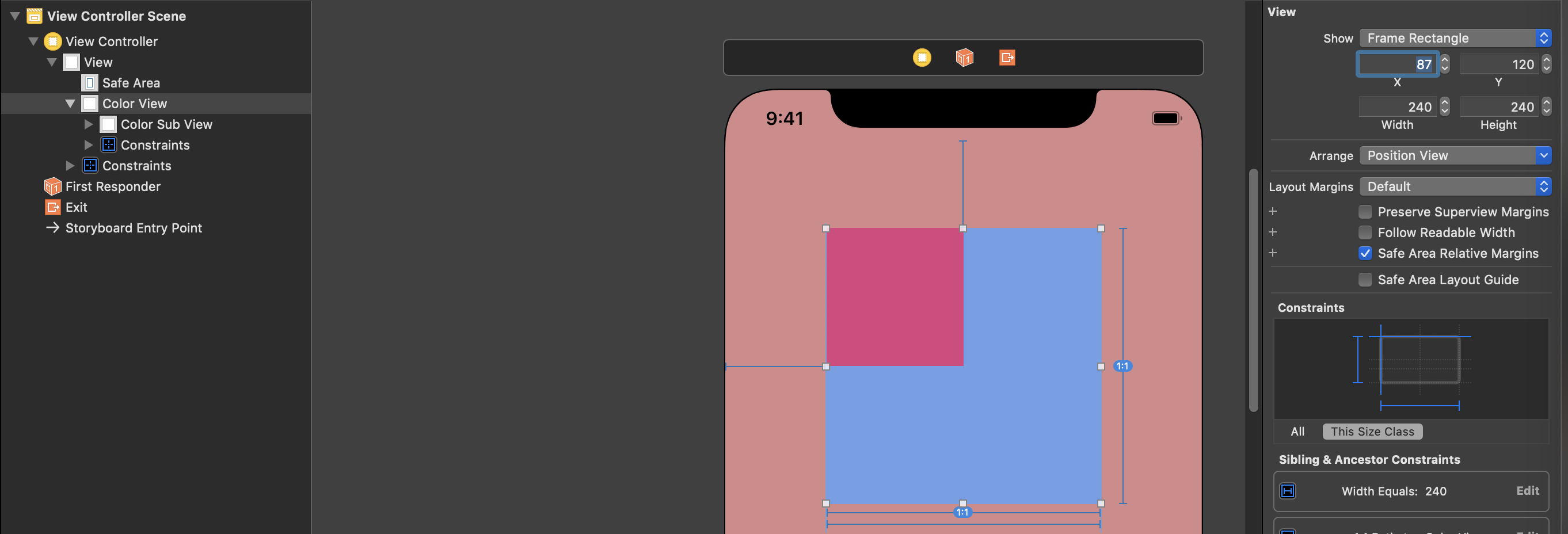 colorSubView가 그 위에 있는 핫핑크 색입니다.