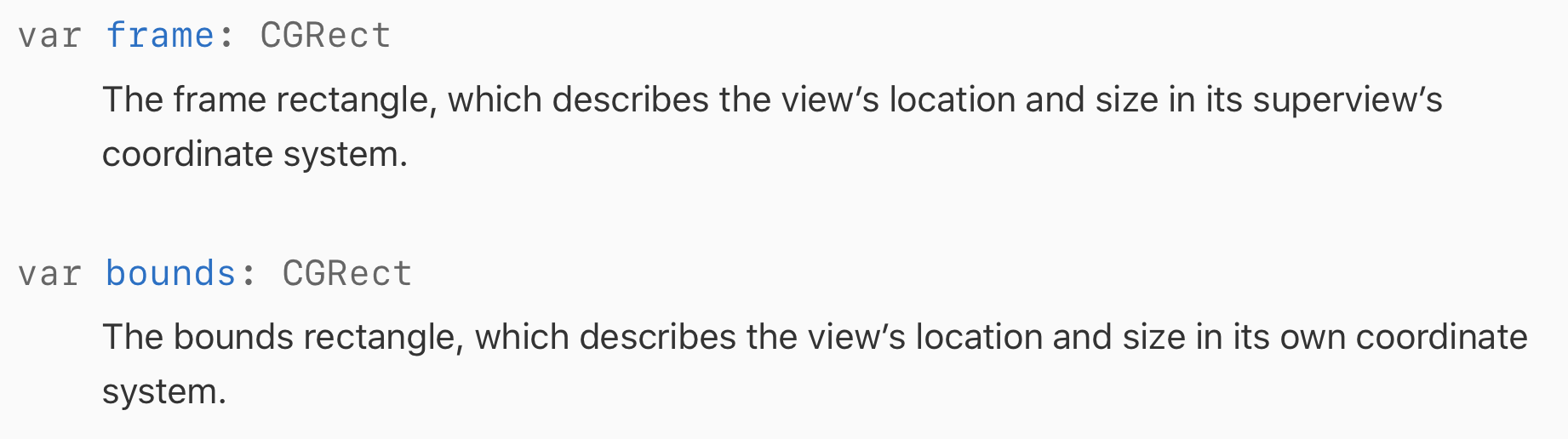 Frame과 Bounds는 UIView의 프로퍼티이므로 UIView문서에서 찾아보실 수 있습니다.