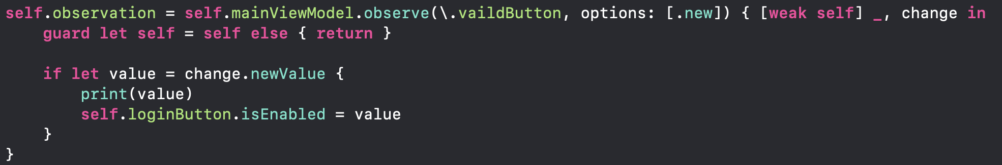 mainViewModel 이랑 NSKeyValueObservedchange가 내려옵니다