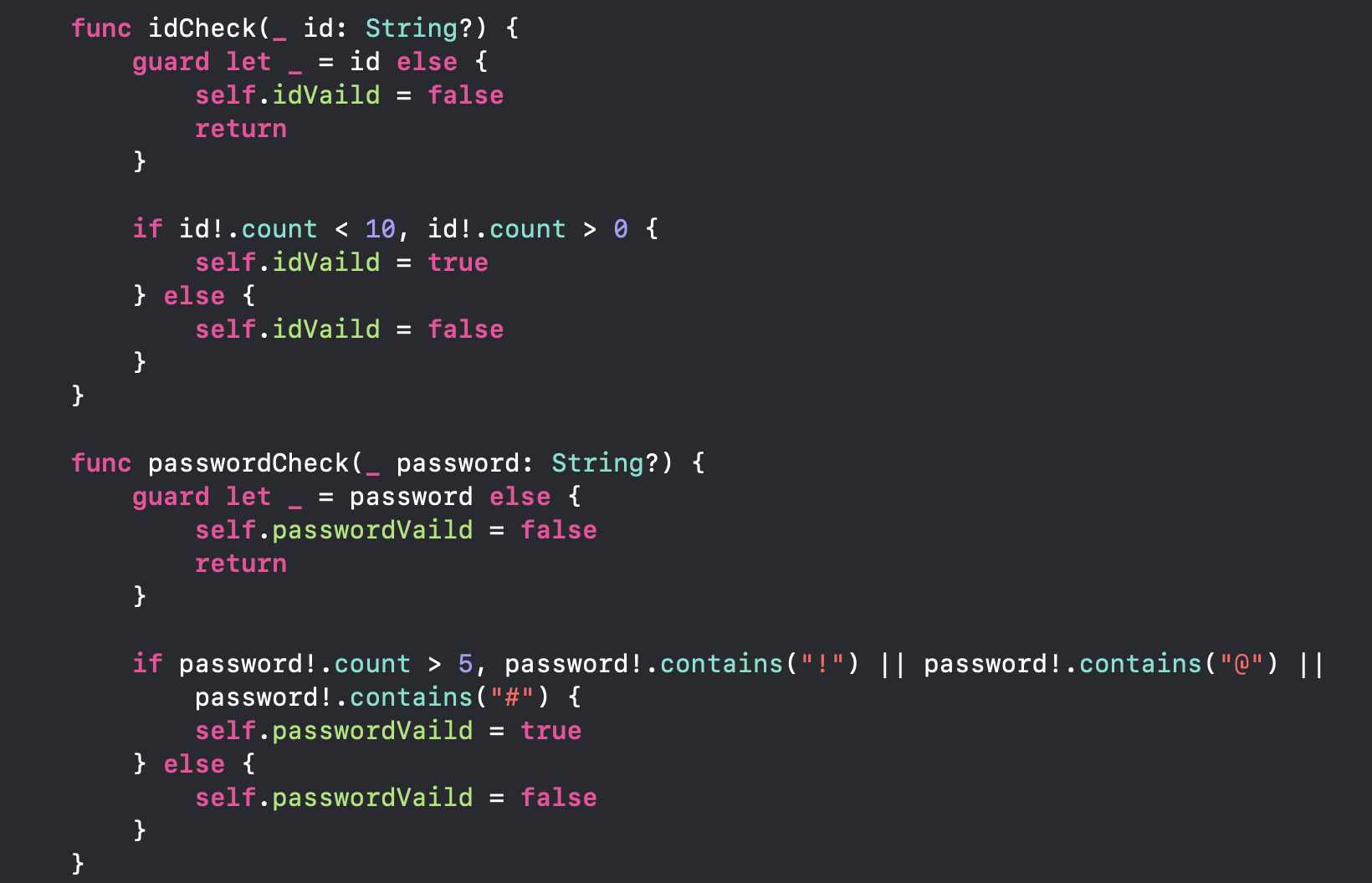 이제 idVaild랑 passwordVaild는 체크하는 함수는