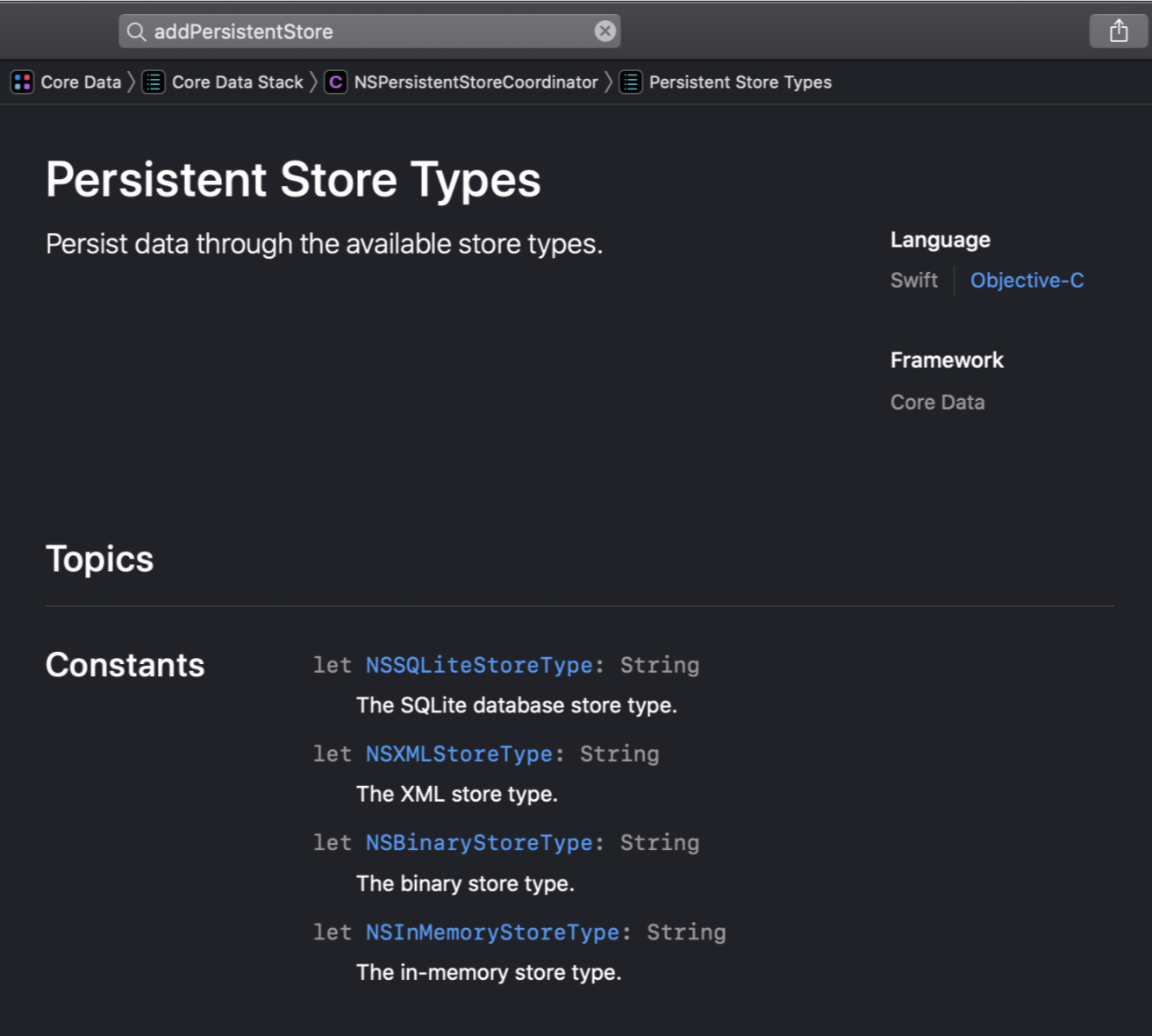 그 다음에 살펴볼 파일은 NSPersistentStoreCoordinator 입니다