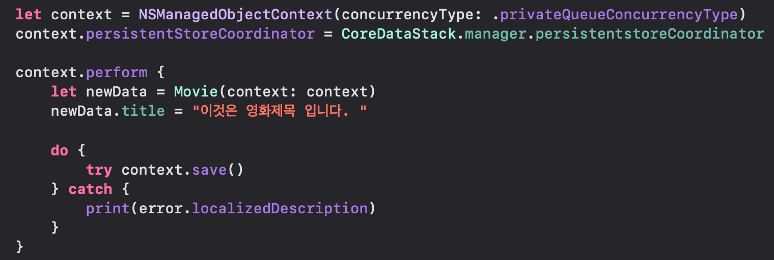 나중에 저장하거나 fetch할 때는 새로 하나 만들어서 하는 게 좋습니다.