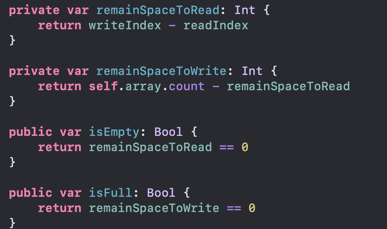 즉 5 (writeIndex) % 5 (array.count )는 0 이므로 처음으로 돌아갑니다
