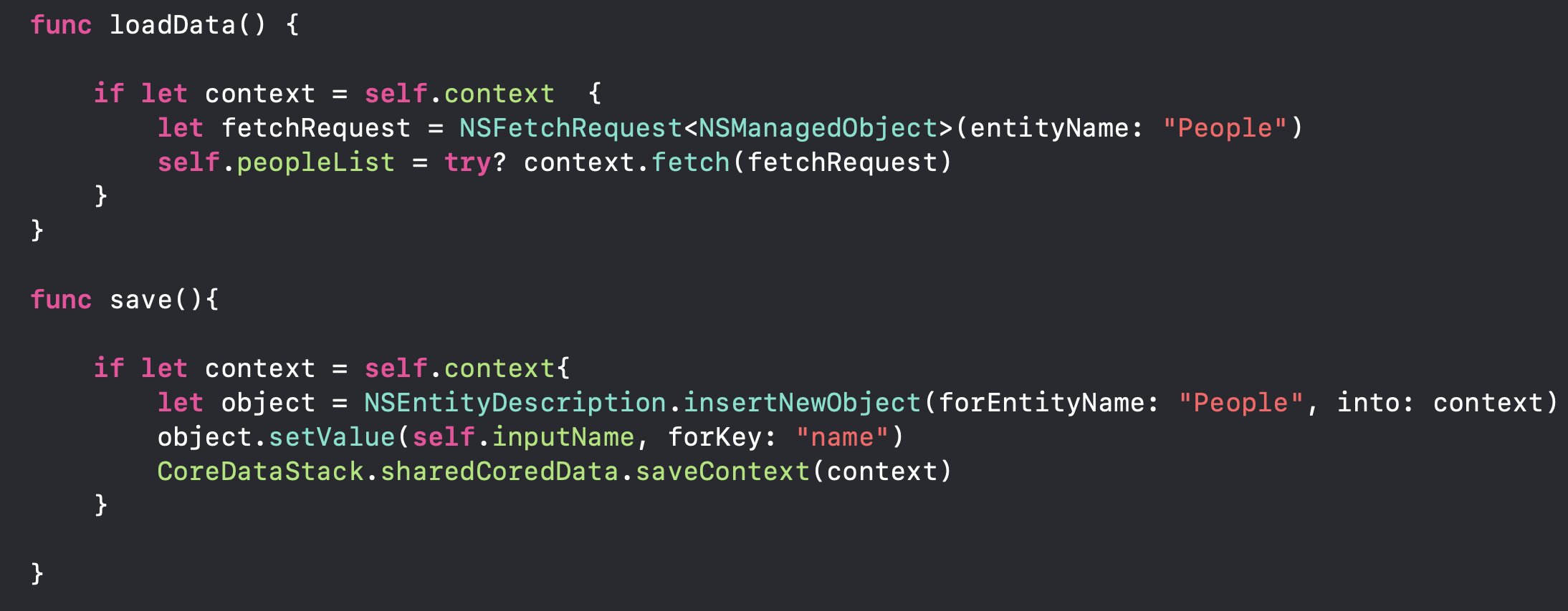 3) 데이터를 불러올때 필요한 NSManagedObjectContext