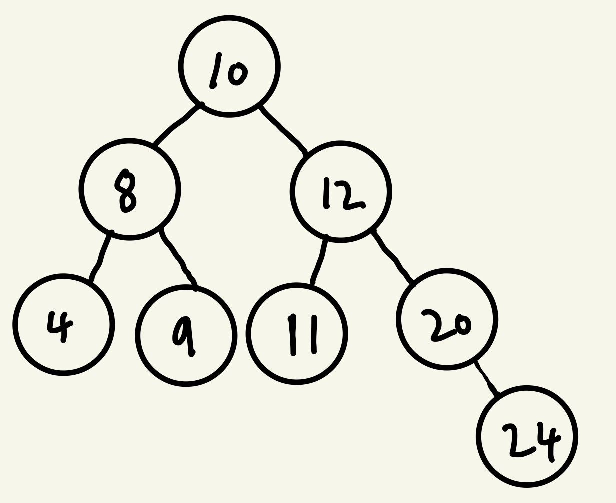 여기서 12를 삭제한다고 생각해봅시다. 12를 삭제하면 12의 오른쪽 노드 중에 젤 작은 값은 20 입니다.